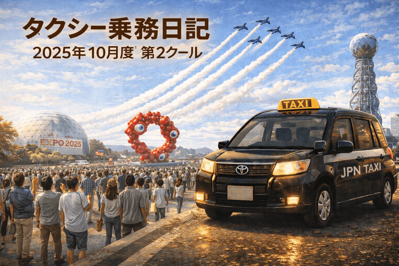 🚖 大阪タクシードライバー実働記録|11月度第1クールまとめ 更新日:2026年1月25日 公開日:2025年10月18日 タクシー日記 2025年11月度 第1クール(10/16〜31)の実働記録をまとめました。 半年間にわたる関西万博も大盛況のうちに幕を閉じ、僕自身もその恩恵を多く受けました。 大阪では「タクシーが過剰供給気味では?」という声も聞こえて […] 続きを読む